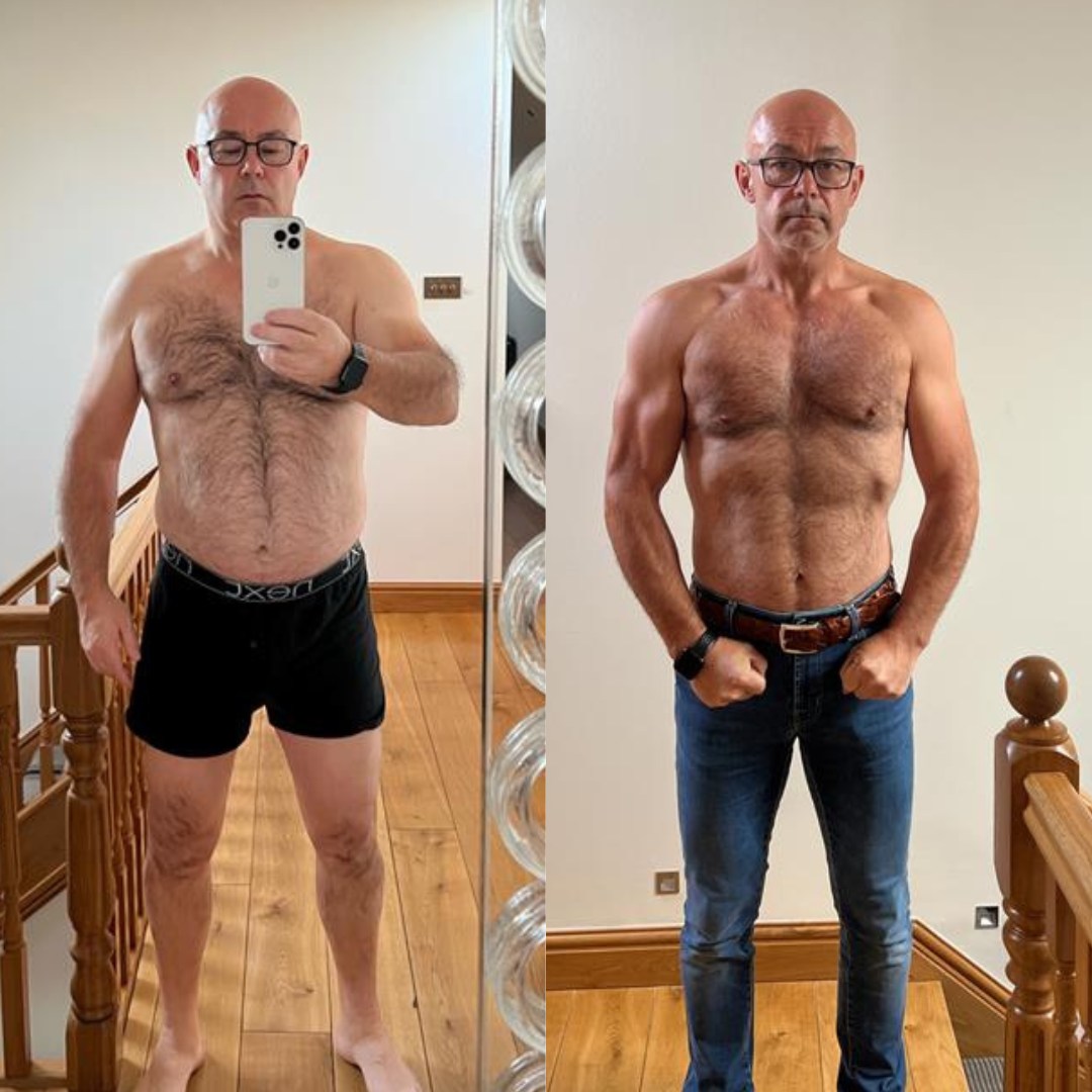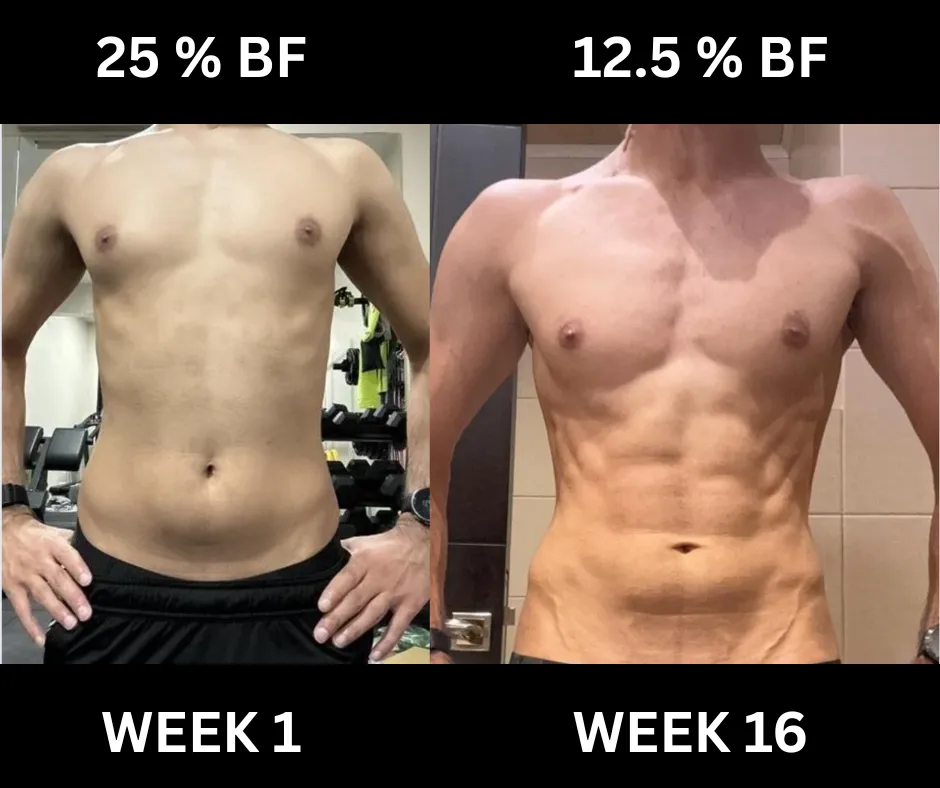 14 kg lost. Body fat dropped from 33% to 17%.